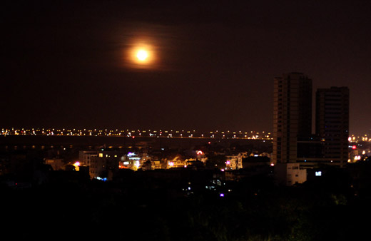 Ich gebe zu, der Begriff „Supermond“, mit dem vietnamesischen Medien am Wochenende hantiert haben, klang sehr vietnamesisch. Astronomisch und astrologische Superlative sind hier ja nicht selten („Das Jahr des Goldenen Drachen!“). Ich habe mich allerdings geirrt, der Begriff wird weltweit von Medien benutzt, um das Phänomen zu beschreiben, dass der Mond in der Nacht auf den Montag heller strahlte und dem menschlichen Auge etwas größer schien, als es normalerweise der Fall ist. Zu beobachten war das Phänomen auch in Hanoi, wo sich dankenswerterweise die Grauschleier und Wolken in Grenzen hielten.