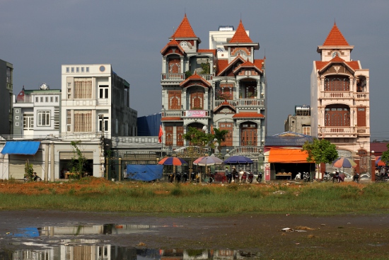 Ich war nicht drin. Ehrlich gesagt vermute ich trotz der schicken Außenfassade wie hierzulande üblich innen recht düstere Räume, die großen Fenster vermutlich den ganzen Tag mit Fensterläden abgedunkelt, und die Räume, wenn überhaupt, mit schweren, dunklen Möbeln bezogen, die auf mich eher „düster“ und „unbequem“ wirken. Insgesamt gibt es in vietnamesischen Häusern oft sehr wenig Stoff und wenig Sofas oder Sessel, was auch am Klima liegt.