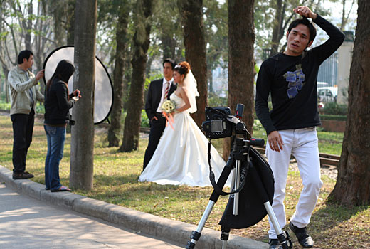 So ganz zufrieden scheint der Fotograph auf dem Bild mit seiner Aufgabe allerdings nicht zu sein. Auch wenn Kamera und Beleuchtungsassistenten sehr professionell in der Gegend rumstehen.