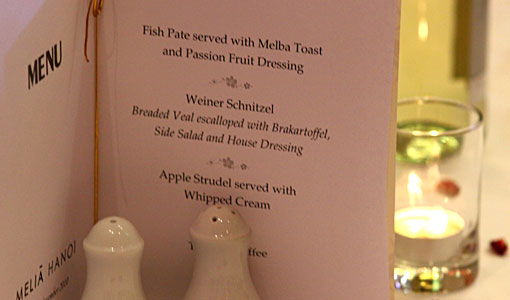 Man könnte denken, die Österreicher wissen, wie ihr Nationalgericht geschrieben wird… (aufgenommen auf dem „Wiener Wohltätigkeitsball“ in Hanoi).